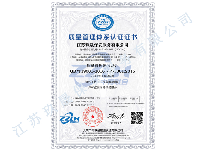 江蘇玖晟保安服務(wù)有限公司成立于江蘇省昆山市千燈鎮(zhèn)。注冊(cè)資金:5000萬(wàn),是擁有省公安廳頒發(fā)的保安服務(wù)許可證的企業(yè)【蘇公保服20170046】,也是昆山市保安協(xié)會(huì)常務(wù)理事單位。